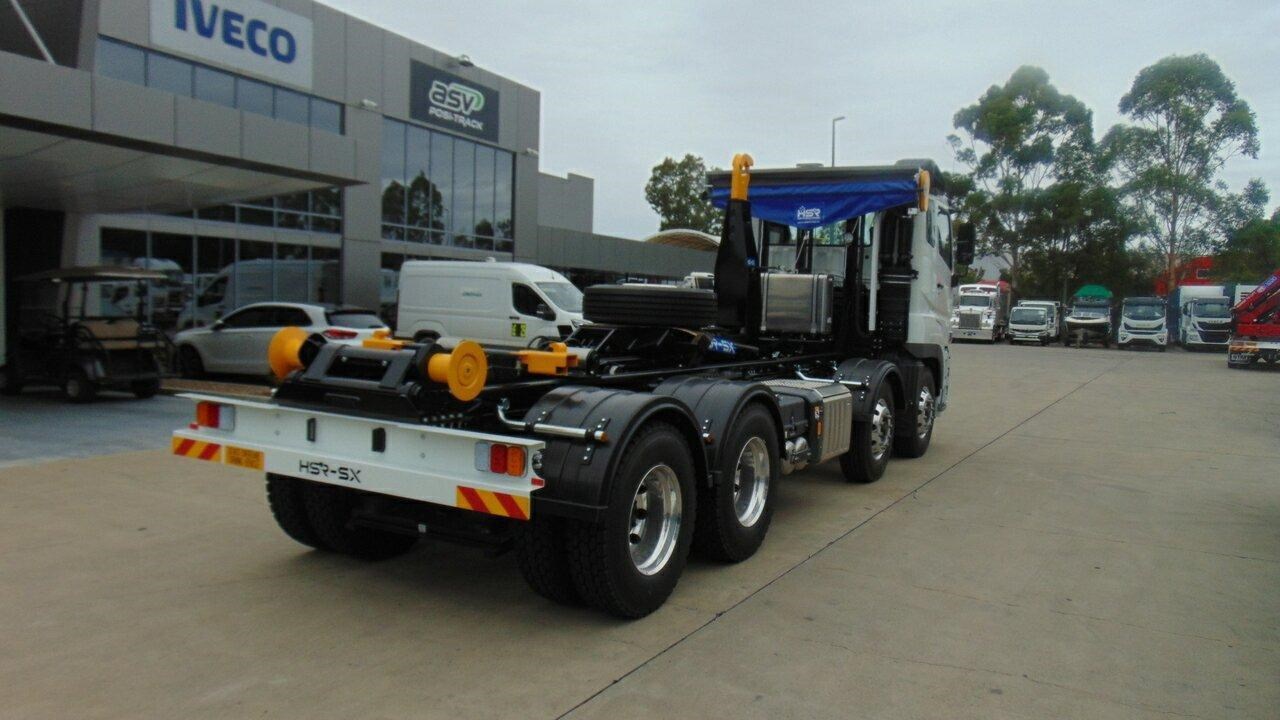 2024 Fuso FS76 8x4 460 Shogun White Hooklift & Bi Fold 10.8l 8x4 - Note: Plus on road costs. Shogun 460hp 8x4, 12 speed AMT, Ful suite of safety features, Auto lights and wipers, Fitted with a 20t Hook Lift Arctic Head, Live drive PTO, Power tarp system, Single Beacon, Worklights.. Ready to work. Call the new Fuso sales team today. Compliance Date October 2024