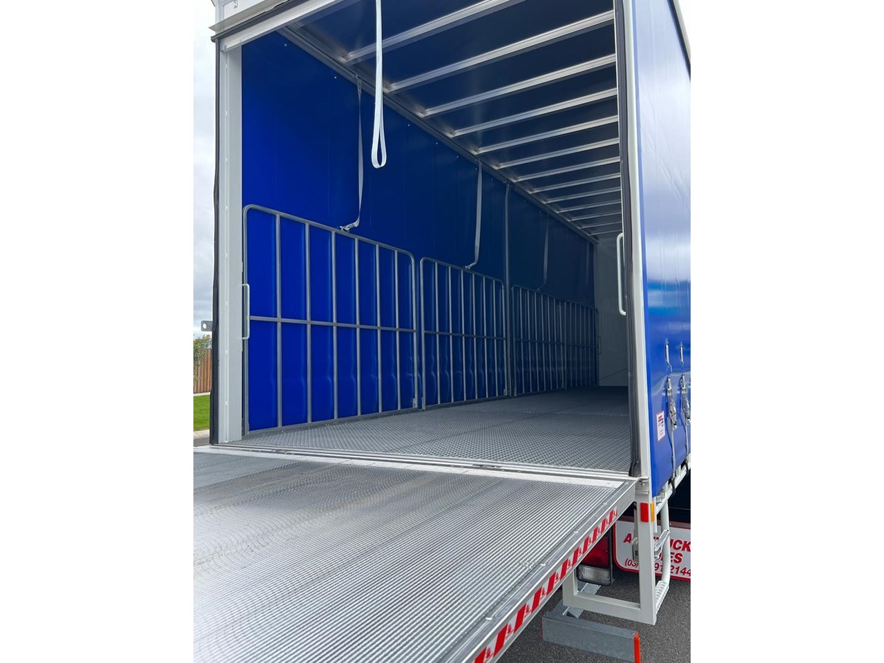 - Curtains: Blue lightning latch curtains for easy and secure loading