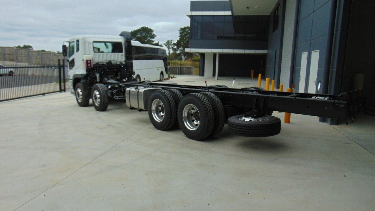 2024 Fuso FS76 Shogun White Cab Chassis 10.8l 8x4 - NOTE: Plus on road costs. 2023 Fuso Shogun 400hp 8x4 cab chassis. 12 speed AMT, Full suite of safety features. Auto lights and wipers, 6720mm wheelbase, NOTE: This chassis is not fitted with an LSD. Call the Fuso sales team to organise a quote for you. Compliance Dater February 2024