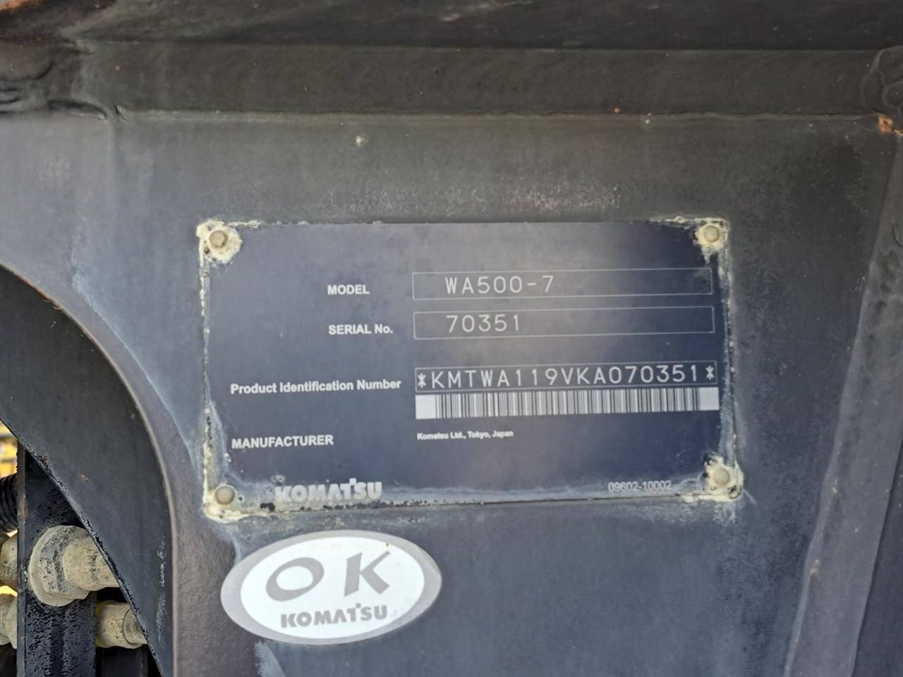 2019 KOMATSU WA500_7 WHEEL LOADER; SN 70351