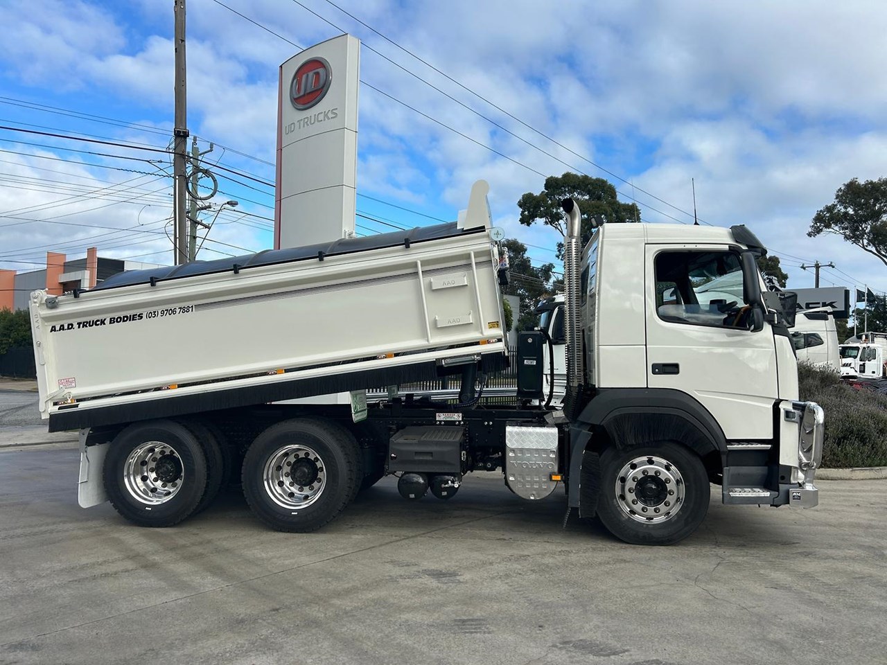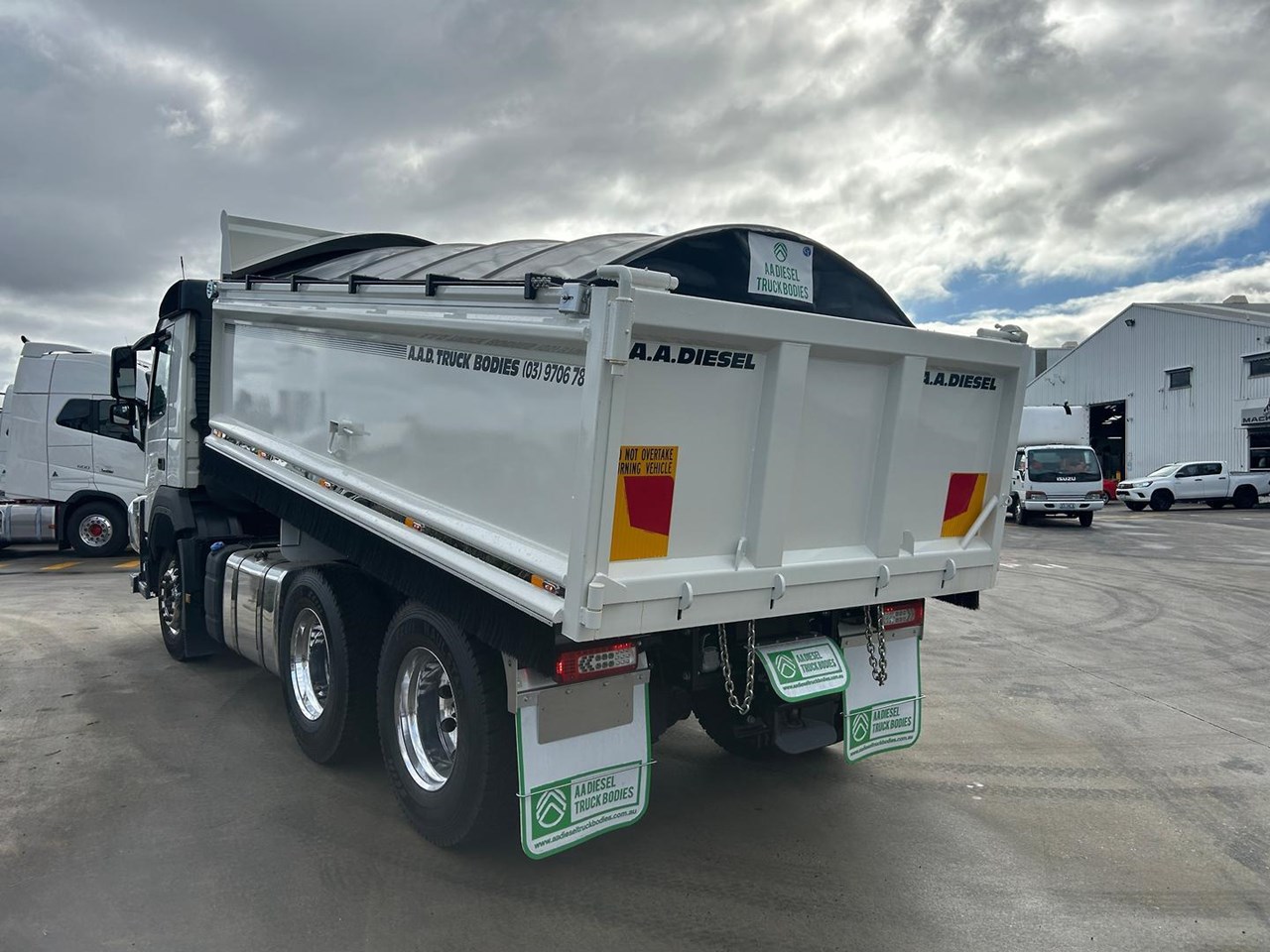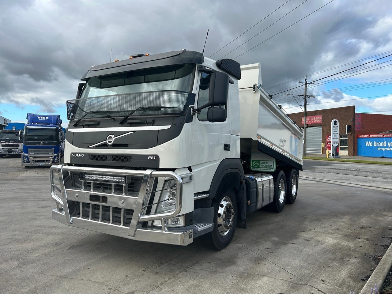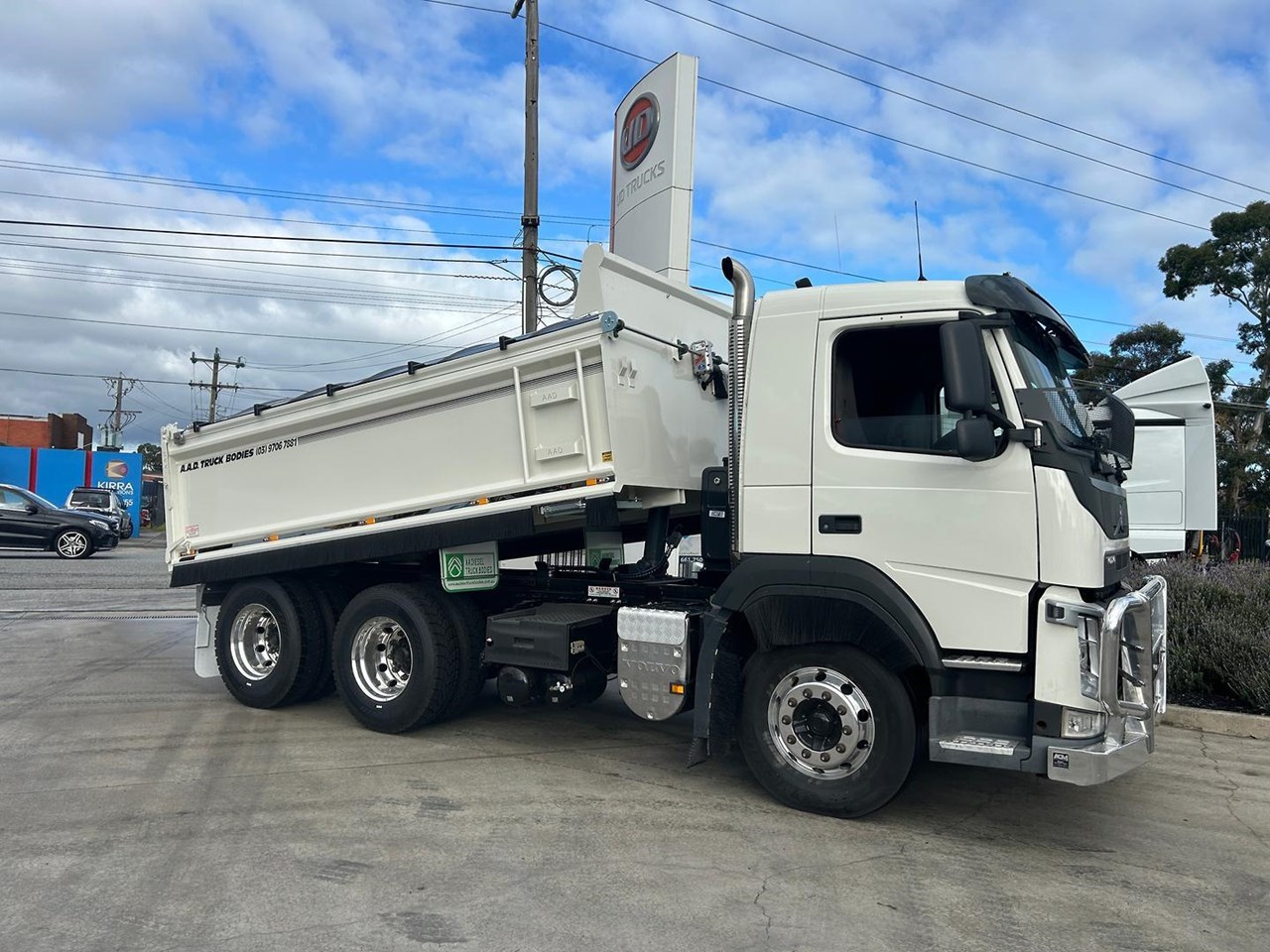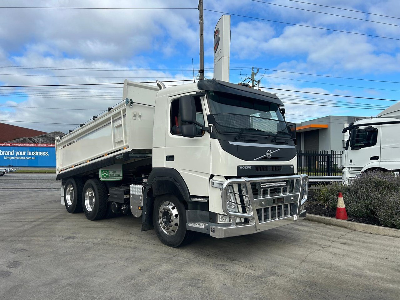 2021 VOLVO FM 13 540HP, 6X4 DAY CAB TIPPER. Volvo 13 Litre 540 HP, 668,000 Kms, Volvo 12 speed I-Shift transmission, Volvo Diffs, Diff locks, Airbag suspension, Alloy wheels, Alloy tank, Bull bar, Fitted with New AAD tipping body with Remote tarp and rear cross member with air electrics and Hydraulic connections and tow hitch, LED beacon light, Reverse camera and more.